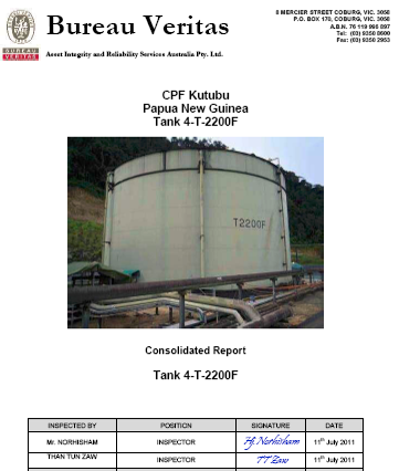 API 653 Tank Inspection (Puma Energy, Oil Search Australia as BV  Australia)